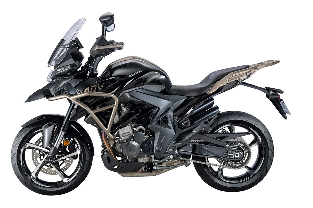 Zontes motocykly přináší komfortní silniční enduro se dvěma režimy jízdy - ECO a SPORT, lehká konstrukce, startování a zabezpečení motocyklu plně elektronicky bez použití klíčku. Součástí výbavy: TFT displej, elektronicky ovládaný aerodynamický plexi štít, chrániče rukou z kovaného hliníku, dvoukanálový ABS system, vstřikovací systém Bosch, hliníková zadní kyvná vidlice, kompletní LED osvětlení, USB nabíječka, centrální zadní tlumič s dusíkovou náplní.